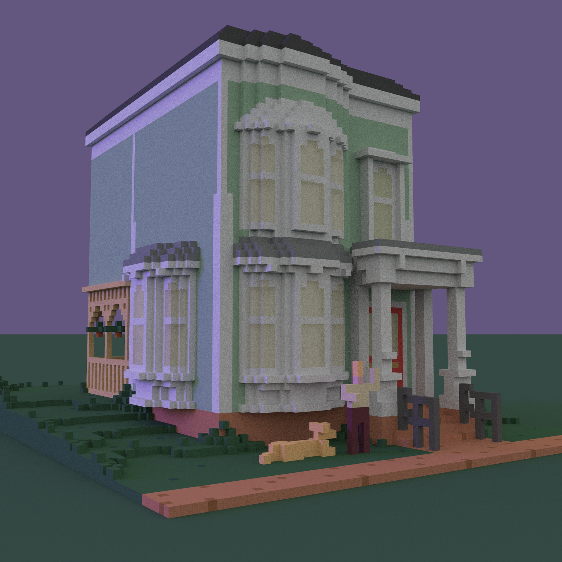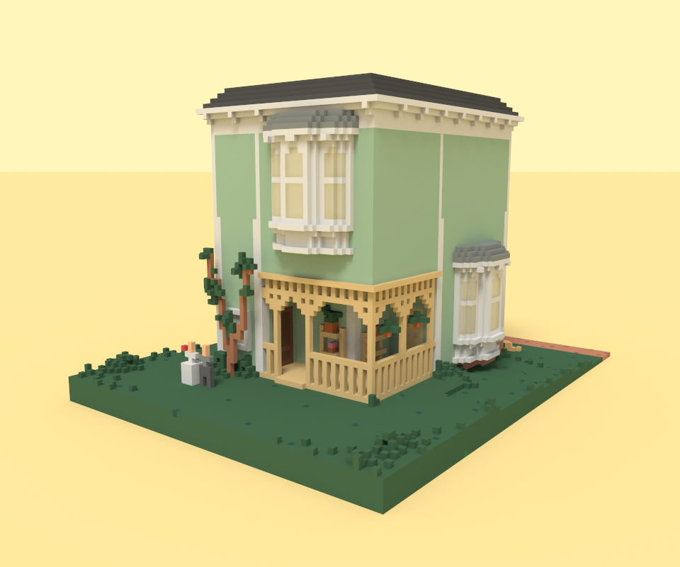 I created this 3D rendering of the House from "Full House" in the program MagicaVoxel. The animations were made by exporting individual renders and turning them into a gif.