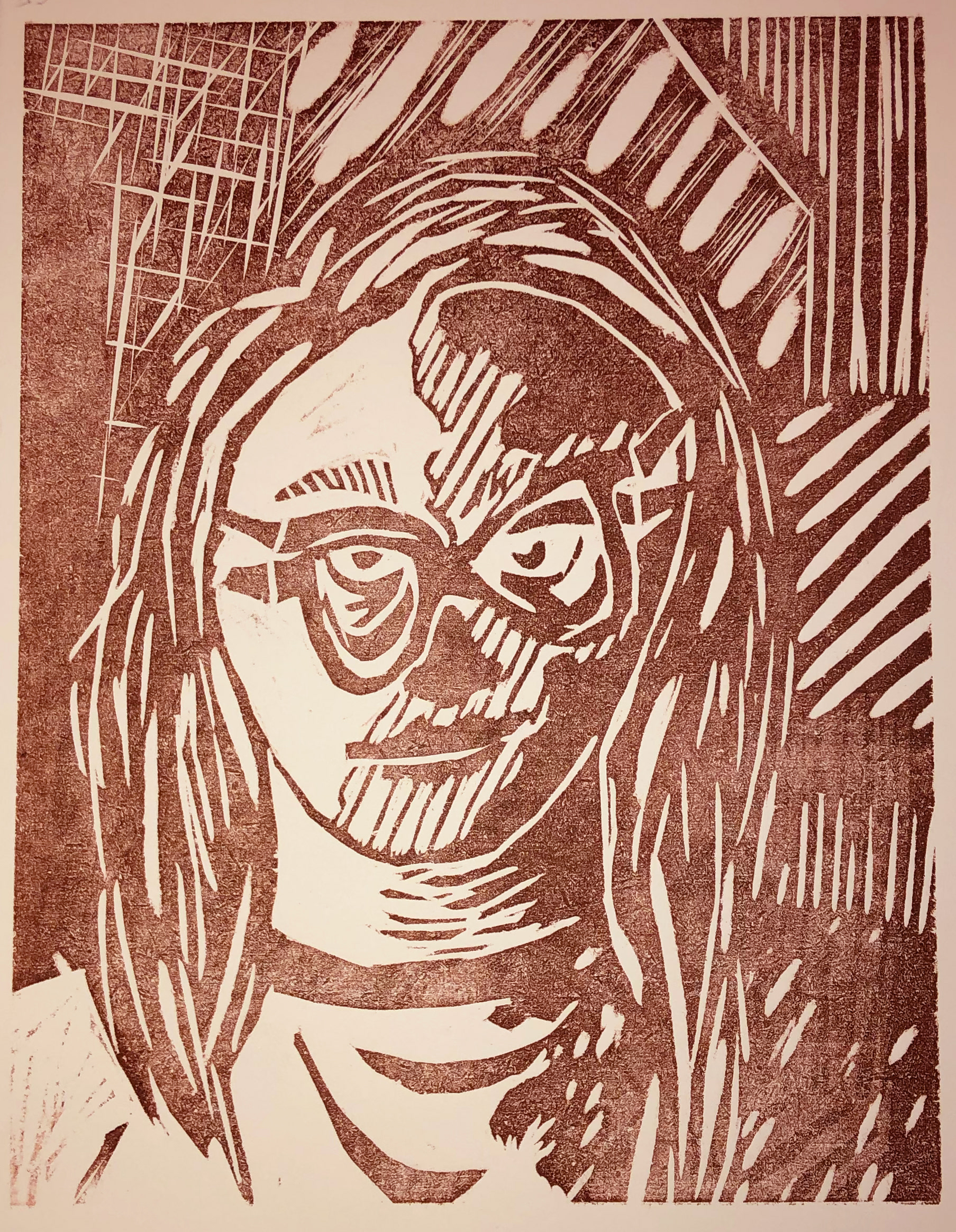 "Portrait of Emily" is a 4"x5", one color woodblock.